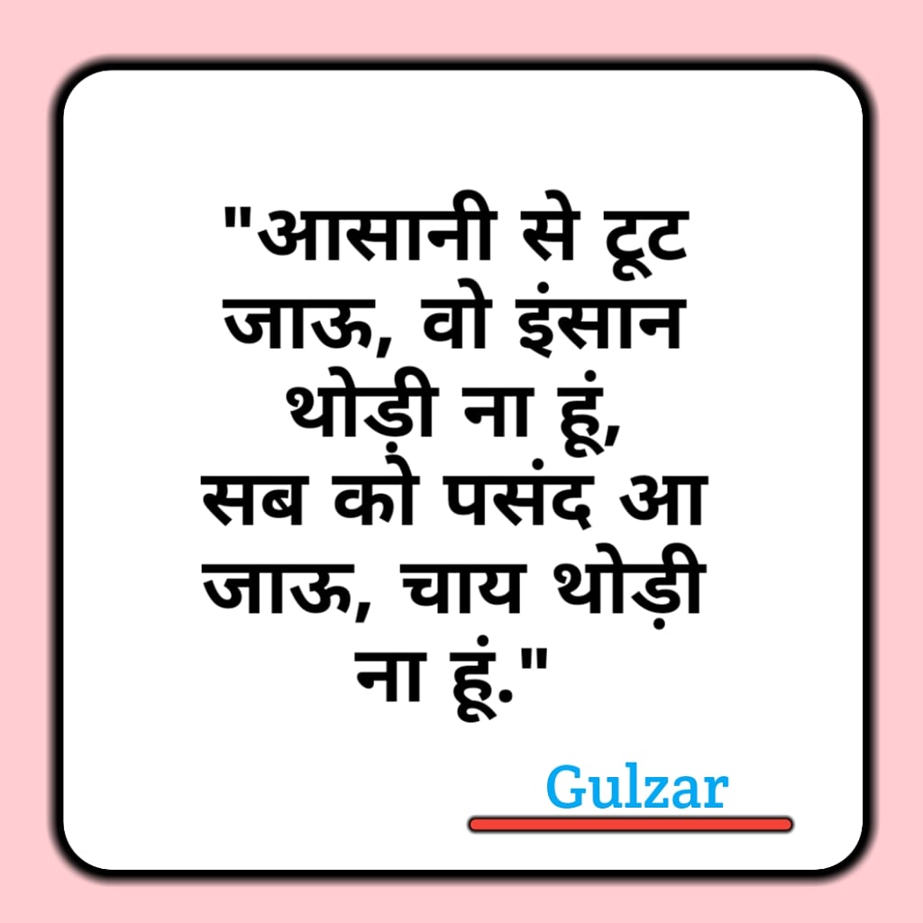 Trending Life Gulzar Shayari In Hindi - Some famous shayaris and gajhal by gulzar sahab. Gulzar shayari in hindi 2 lines is impressive; Life Gulzar Shayari In Hindi / Also read gulzar hindi quotes & gulzar shayari in hindi 2 lines.
